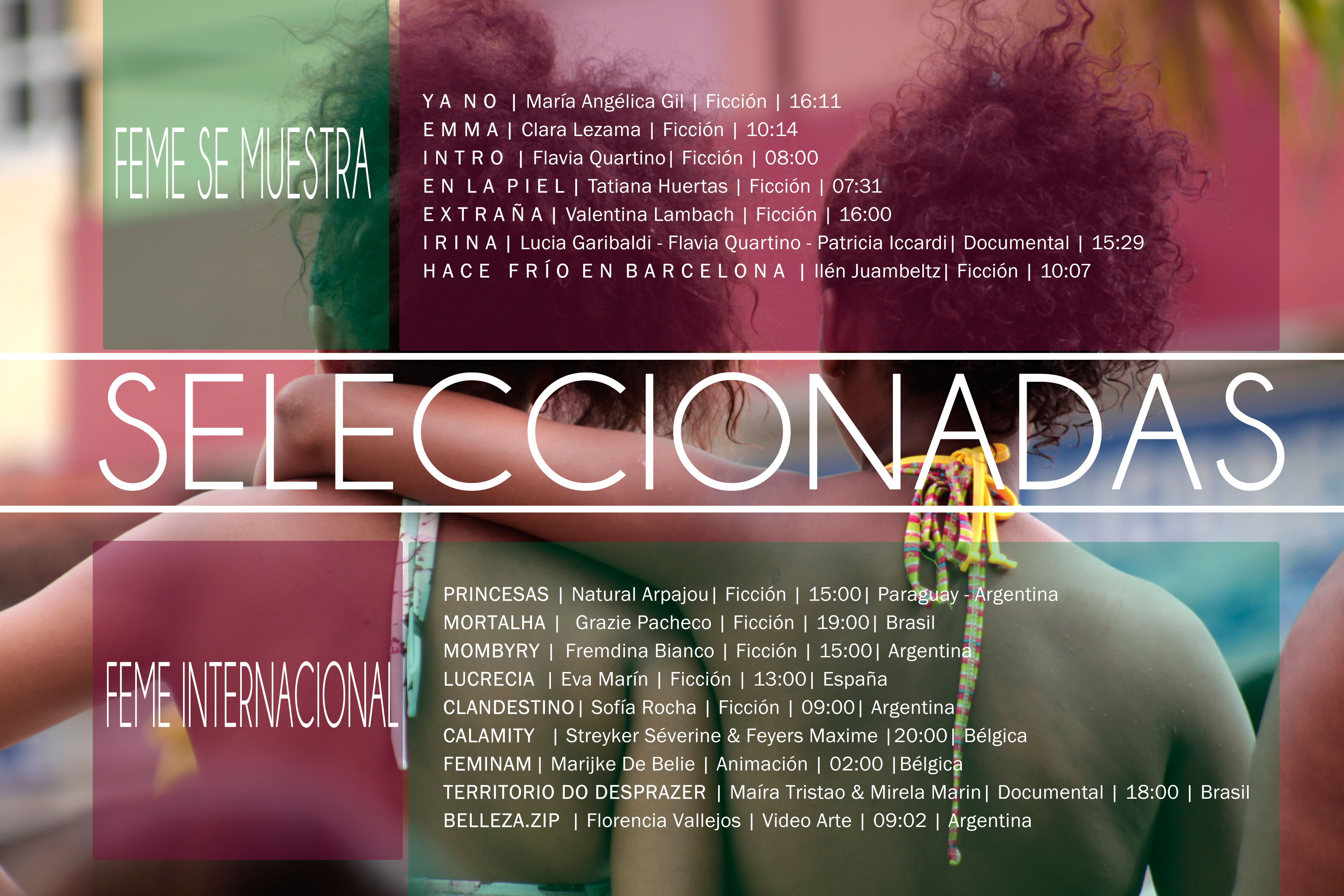 En esta cuarta edición se recibieron más de 250 cortometrajes de países como Irán, España, Italia, Polonia, así como de toda Latinoamérica. La selección se ha realizado desde una perspectiva feminista.